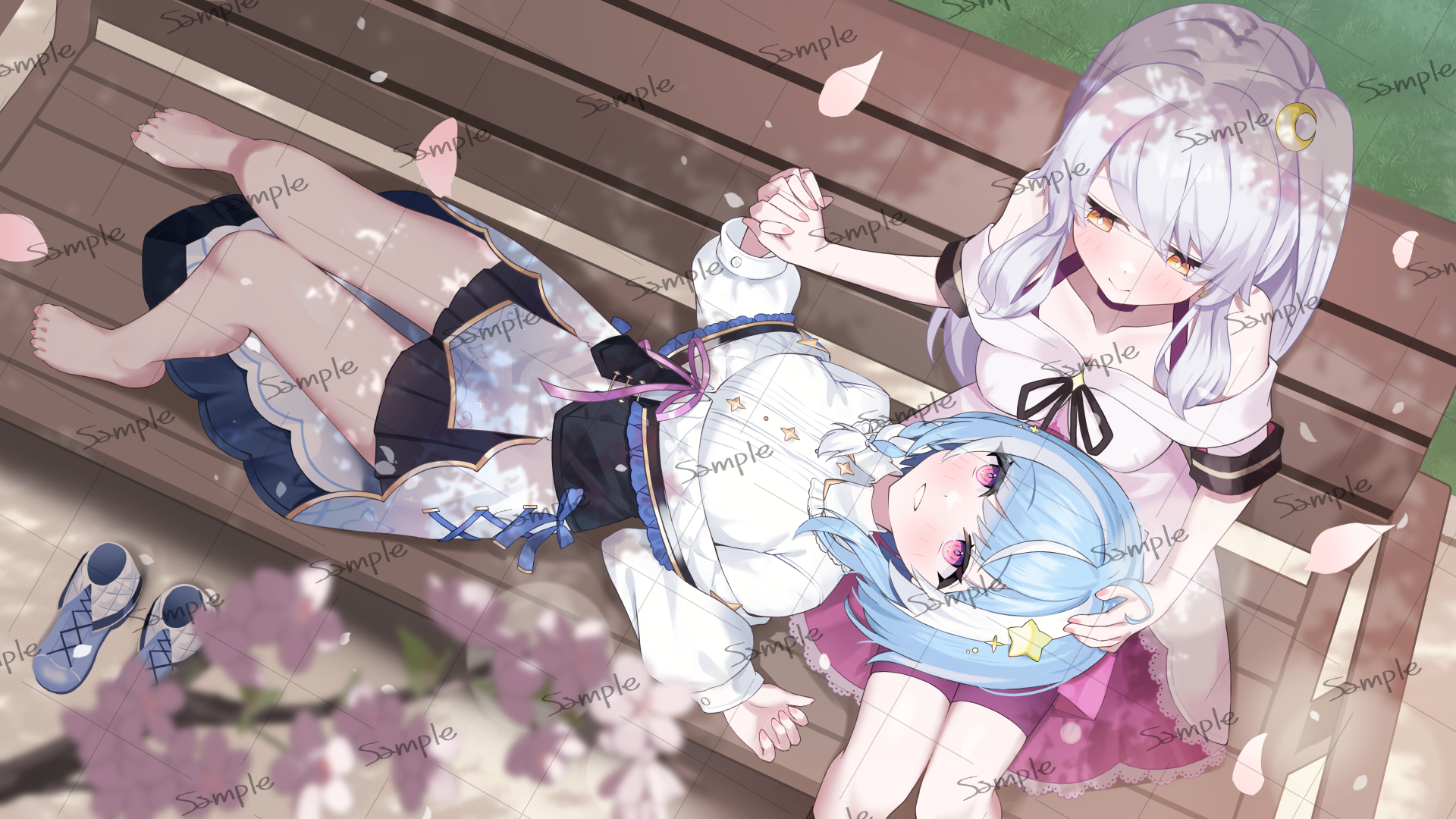 一緒に活動されている星宮明様と、公園のベンチで2人仲良く過ごしているイメージで描きました。恋人繋ぎや目線が合っている描写で、二人の仲の良さが伝わるよう工夫しました。
